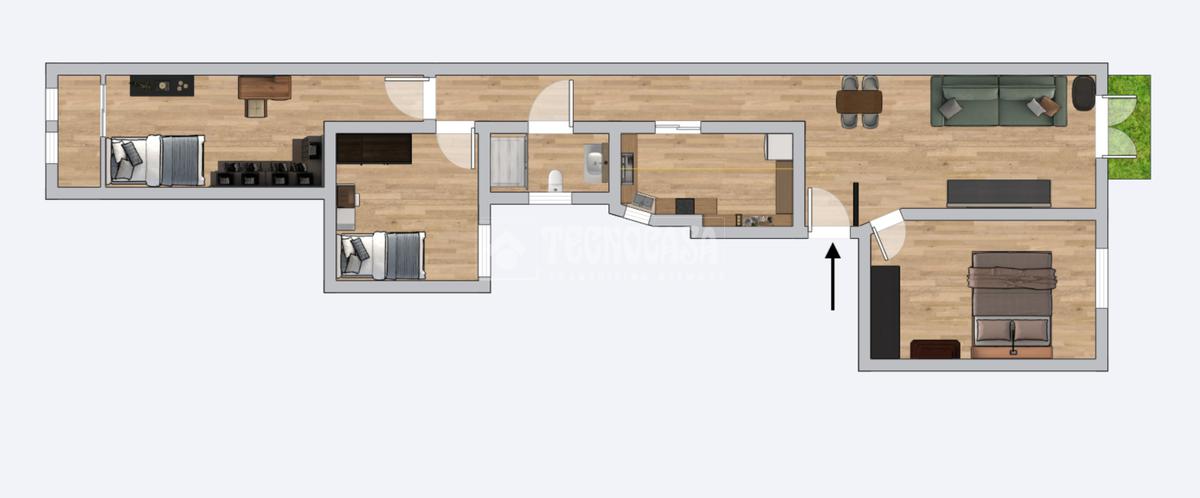 La propiedad, situada en la tercera planta sin ascensor, ofrece una distribución funcional: dos habitaciones grandes (de 10 a 12 m²) y una pequeña (de 8 m²). Además, la calefacción individual a gas asegura un ambiente cálido y confortable durante los meses más fríos.