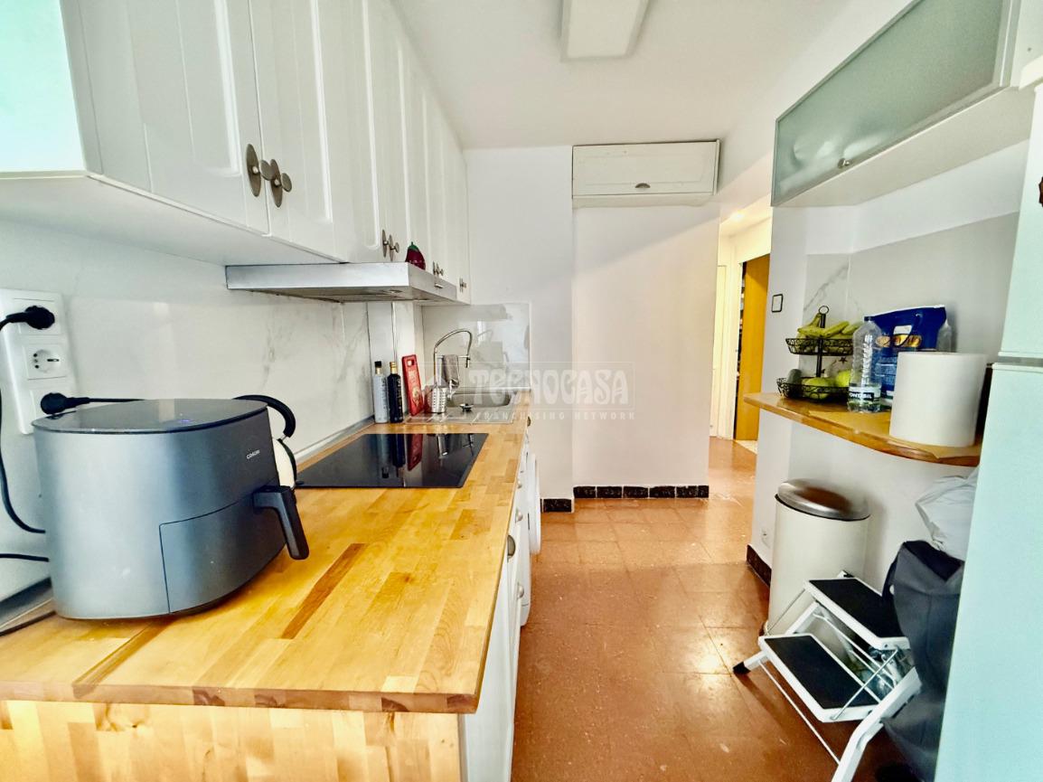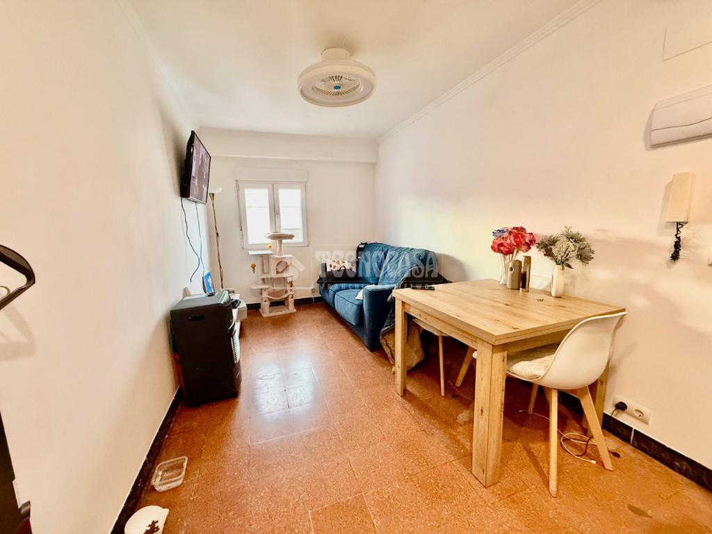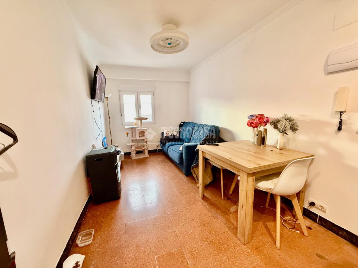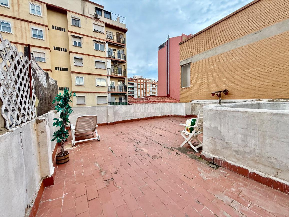 El inmueble es 5ª planta sin ascensor, tiene 45 metros construidos, de los cuales útiles son 40 distribuidos en dos dormitorios actualmente uno usado como cuarto vestidor, cocina, baño y salón, además de una terraza exterior de 46m2.