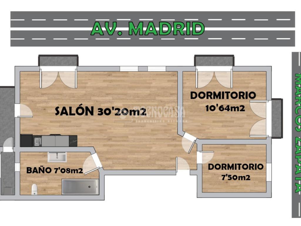 C/ MARZOS 2 dormitorios, salón, cocina y baño. Exterior a Avd. Madrid, galería y 3 balcones. Entrar a vivir.